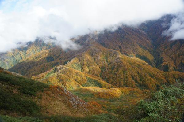 稜線上は風もなく、山頂からは360°の紅葉に日本海のブルー!!お弁当を食べながら日向ぼっこができるほどでした。