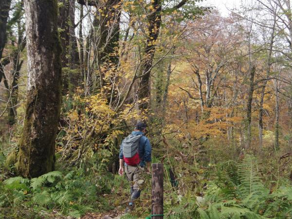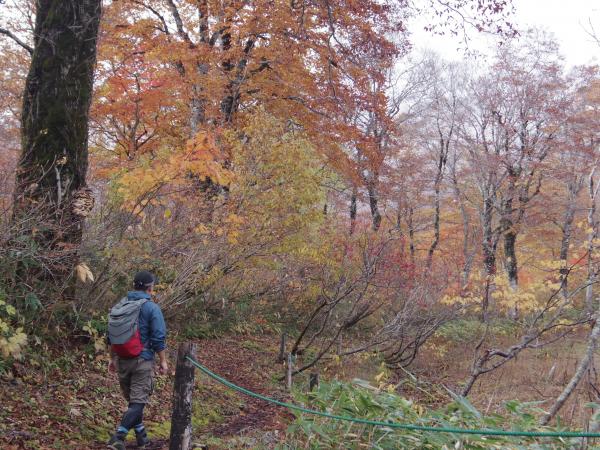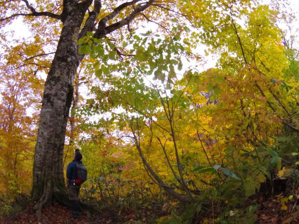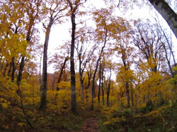 原生のブナ林が見事に黄色く彩づいて視界の全
