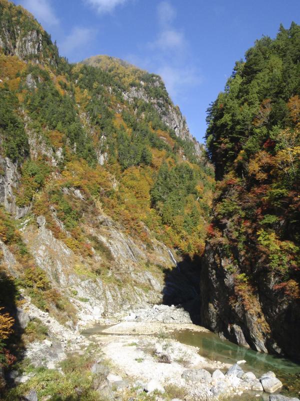 十字峡では、轟音とともに黒部の荒々しさを耳で感じ、膨大な水量と雪にえぐり取られた岩肌が印象的なルートです。