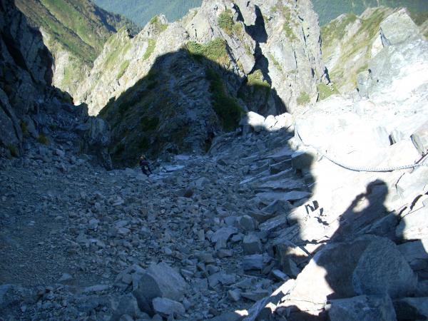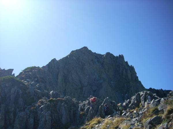 2日目 早朝に出発して槍沢をひたすら登ります。槍ヶ岳山頂までは多くの登山者がいました。今回の山行で一番長い行動時間ですが天気が良く3000mの稜線を快適に歩きました。