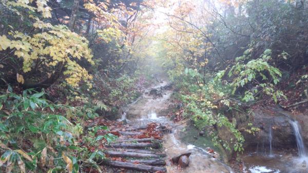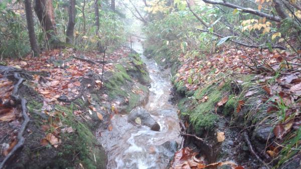 雨の為というか、雨天時の登山道はほぼ川と化しています。。。