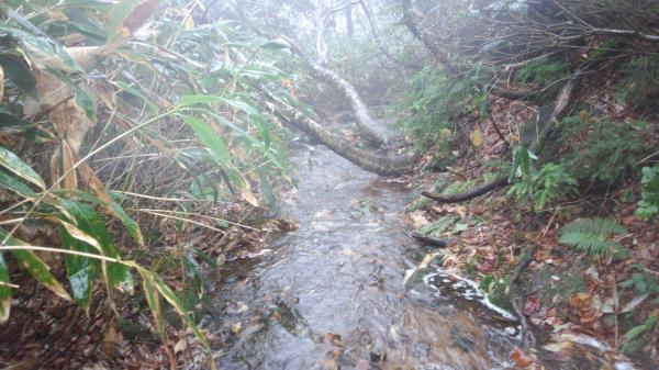人があまり入らないせいか登山道は木で覆われ、しゃがんで歩いてもぶっとい枝に何度も頭を打ちました。川の中をジャブジャブ進み頭を打ち付けながらも進みましたが、