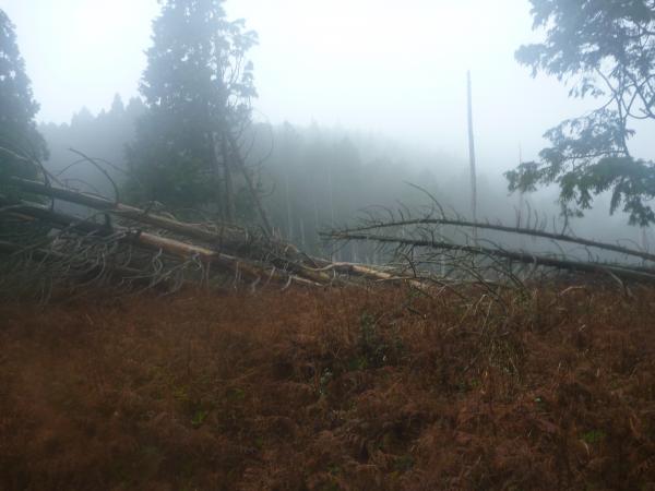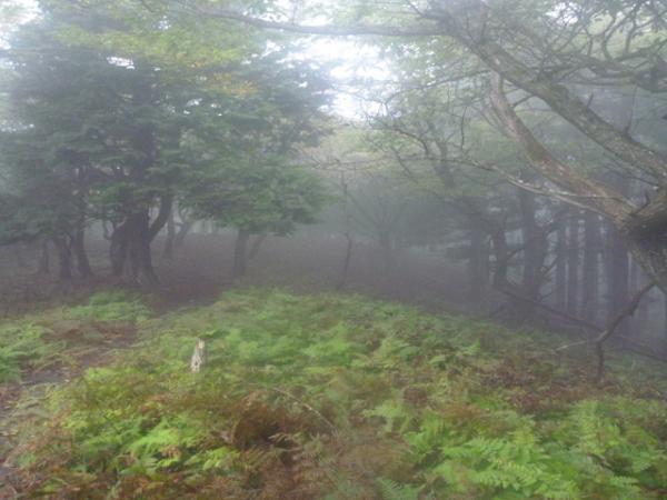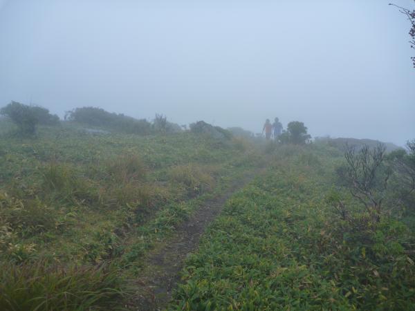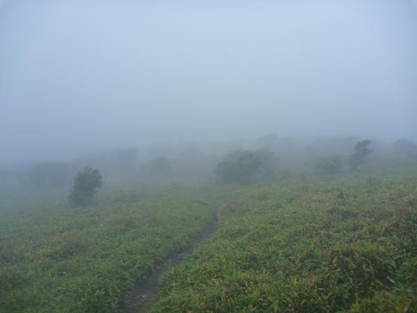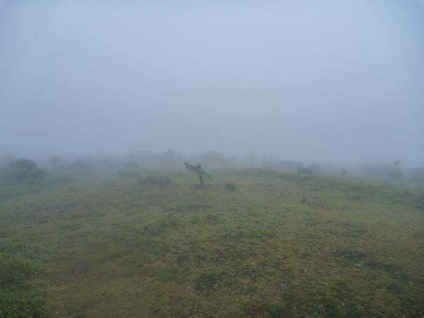 稜線からは本来景色が良いのですが、残念ながらガスっていて真っ白でした。