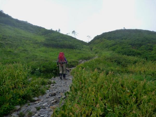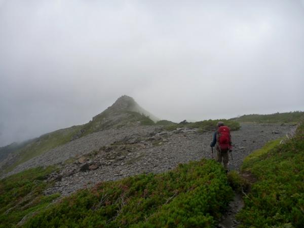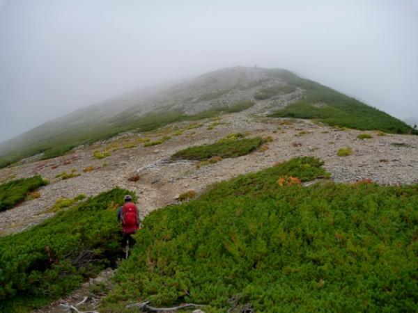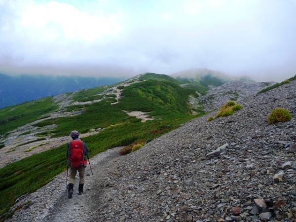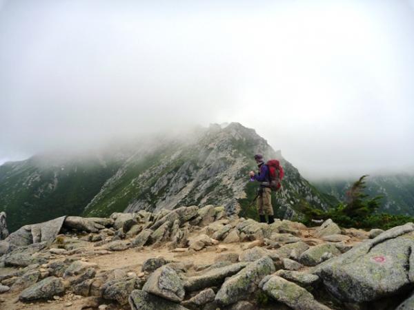 2日目も終始視界は悪く、常念から下り始めたところで雨が降って