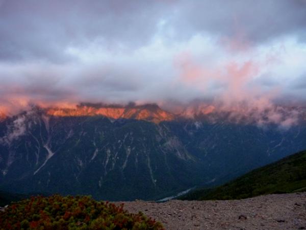 蝶ヶ岳の稜線に出ると、槍・穂高方面の景色が見れましたが、