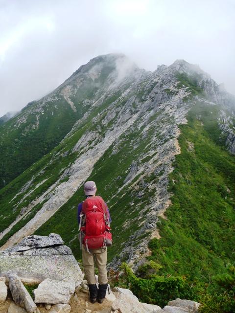 常念岳への登り、前常念からの下りは思いのほか、岩が多く歩きにくいので