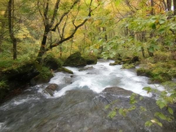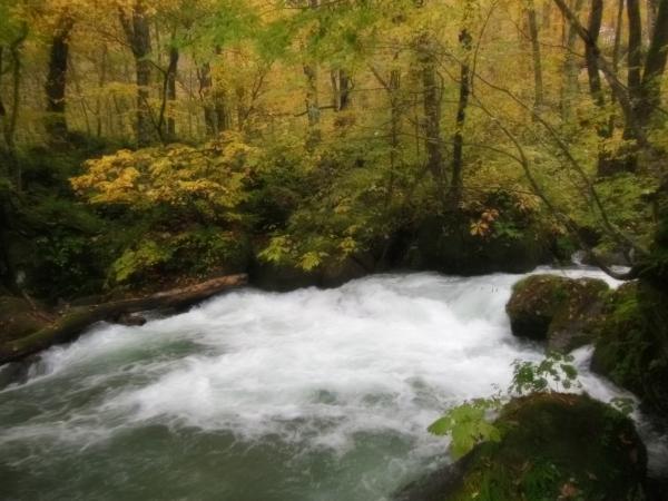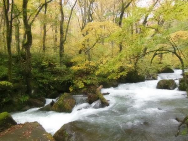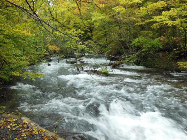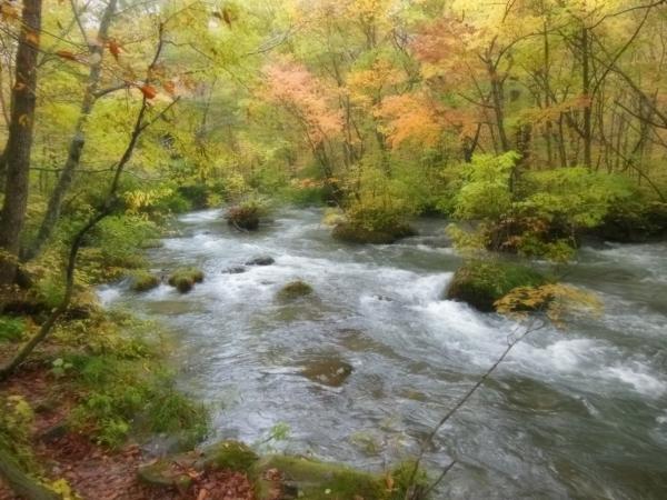 それでも奥入瀬の清らかな流れと、淡く色づいた木々がとても綺麗で