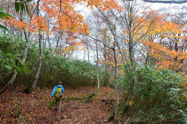 登山道自体は整備されていたて歩きやすいですが、重なった落ち葉、岩、粘土質の部分などが雨の影響で慎重さが必要な状態でした。