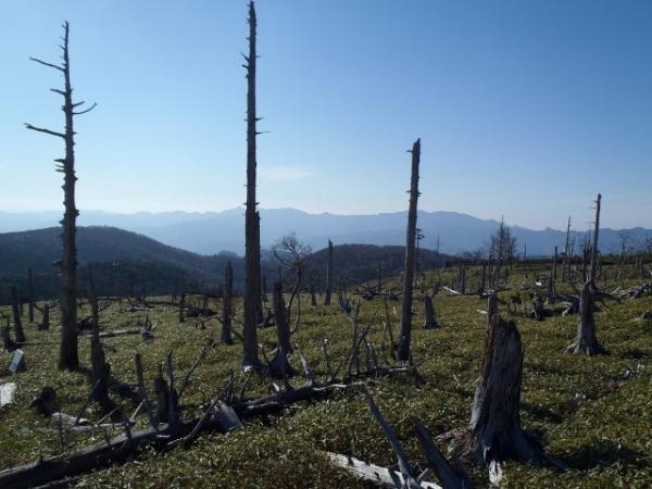 大台ケ原の魅力の一つ、正木嶺~正木ヶ原の立枯れの木は写真で見るよりずっと雄大です。