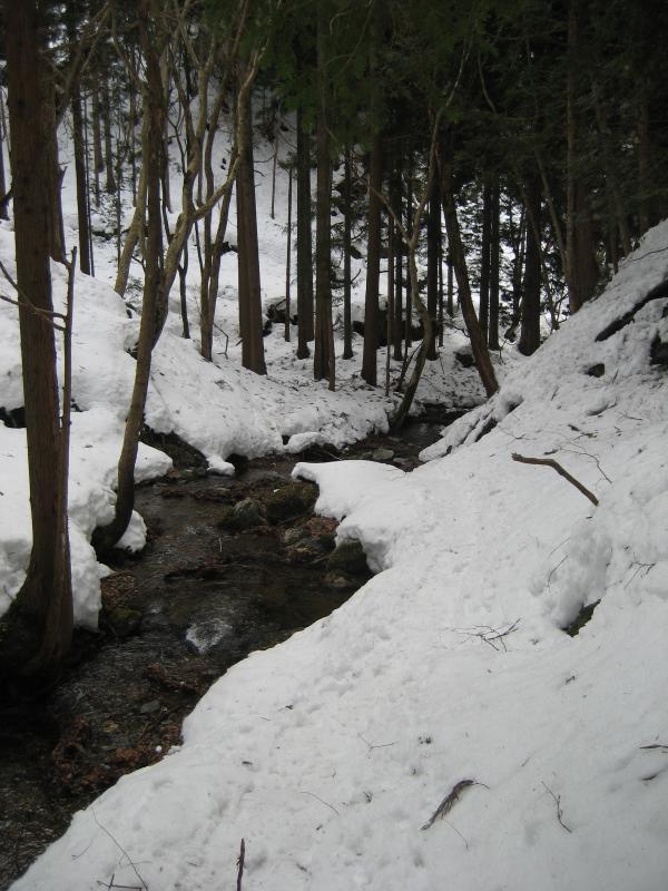- まだ雪が沢山あります 沢を渡る所が何箇所かありました