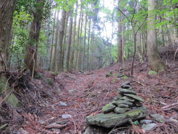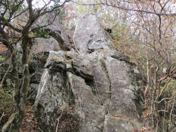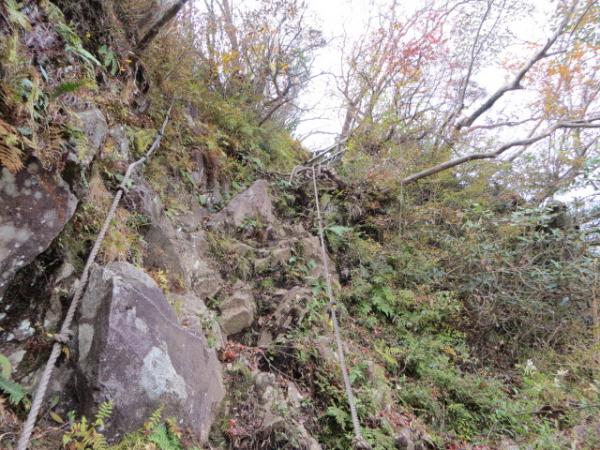 - 大南林道分岐より足場が悪い崩壊した林道を進みますので、注意して下さい。林道が途切れるあたりより、小さな沢を越え尾根に取り付くあたりが分かりづらかったです。岳滅鬼峠より岳滅鬼岳の岩峰の上りは、2カ所の長いロープがあります。3点支持で慎重に進んで下さい。