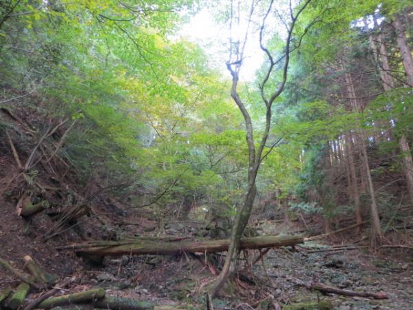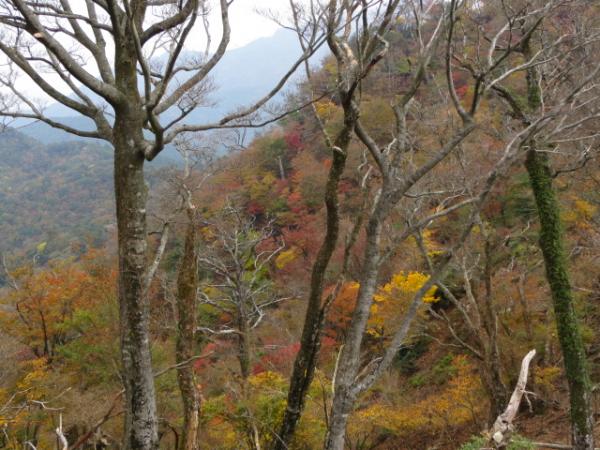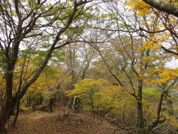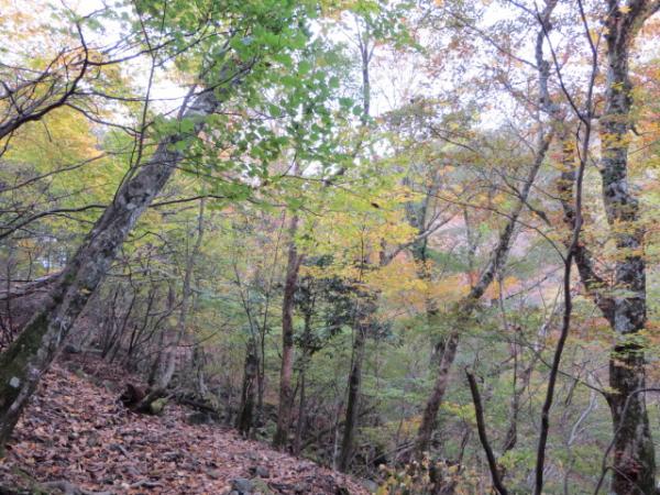 英彦山山伏の修行の場である岩峰の岳滅鬼山へ。タイミング良く紅葉がピークで、標高940mの岳滅鬼峠付近より岳滅鬼山までの尾根沿いは、色つきのよい紅葉を観賞できました。特に、最高ピークの岳滅鬼岳(1,040m)から岳滅鬼山へ向かう尾根の鞍部は、黄色の紅葉が鮮やかで、本日一番のエリアでした。今日使ったルートは、植林地、沢沿いの道、林道、岩尾根と変化に富む登山道で楽しめました。しかし、ルートが、分かりづらい箇所が出てきたり、岩峰のロープやハシゴなど危険箇所もありましたので、しっかりした準備でお出かけ下さい。