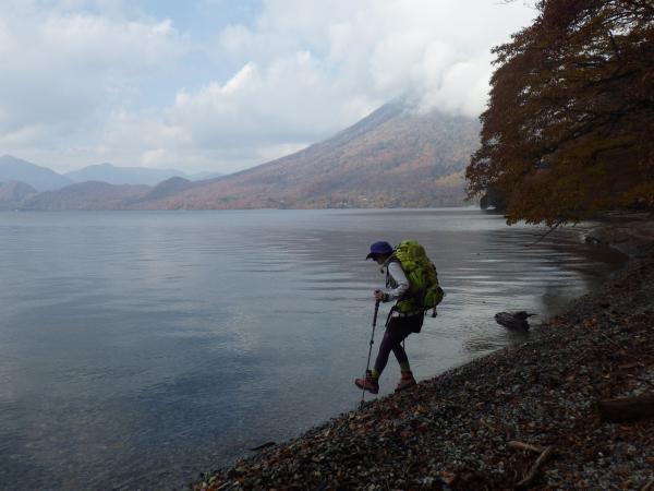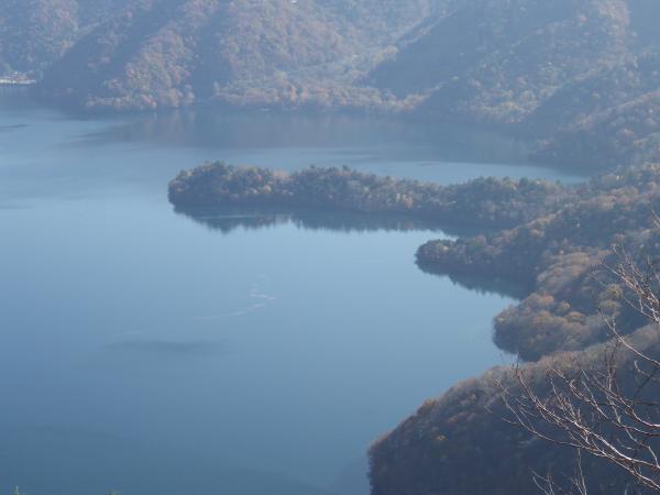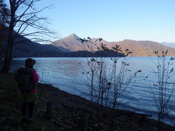 紅葉した木々の間から湖畔のコバルトブルーがキラキラと光り、トプン、トプンと心地良いリズムが音をたてる
