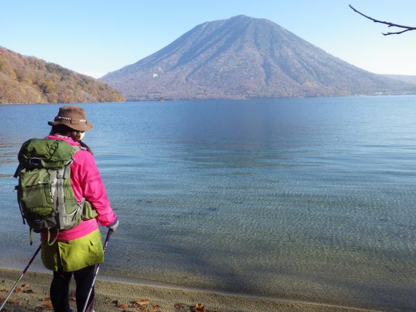 歩く程に高度が上がり、中禅寺湖がより青く深く、紅葉の赤や黄色が鮮やかに広がって行く
