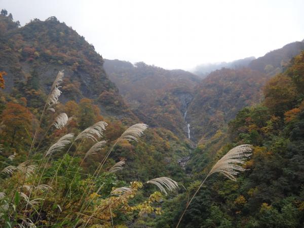 そこからまた登って登って屏風沢側に出ると、今度は山肌を横這いする道に出ます。昨日の雨で濡れているので、滑らないよう慎重に歩みを進めます。ここが一番緊張しました。分かりにくいですが、草に隠れて鎖やロープも這わせてあったので助かりました。