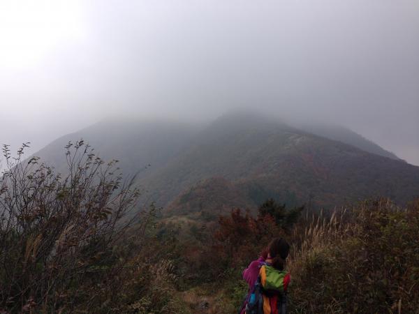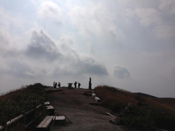 どっしりとした頂上にはガスがもやっとかかっておりましたが、
