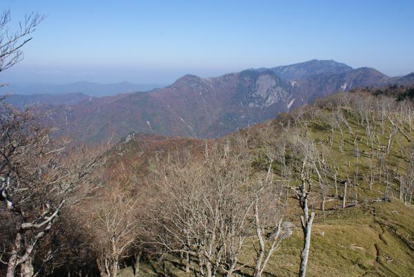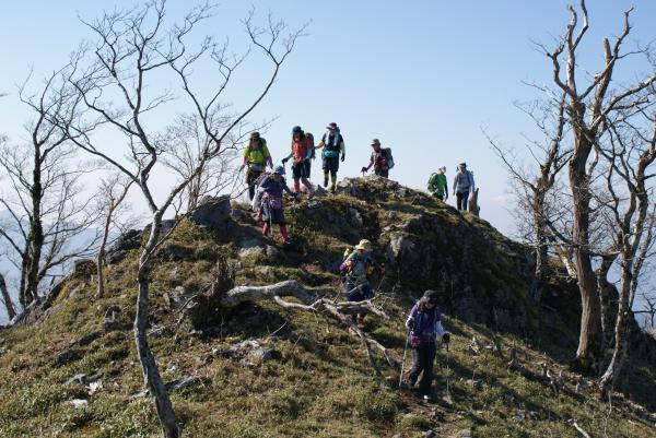 登山口からしばらく歩くと開放感たっぷりの尾根筋に出ます。そこからは軽い上り下りを繰り返しながら2時間ほどで釈迦ヶ岳の山頂に到着します。