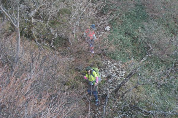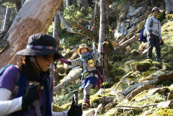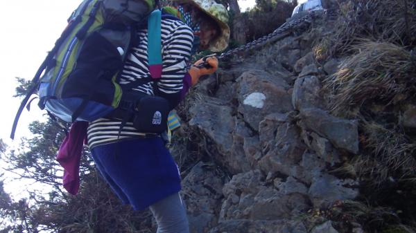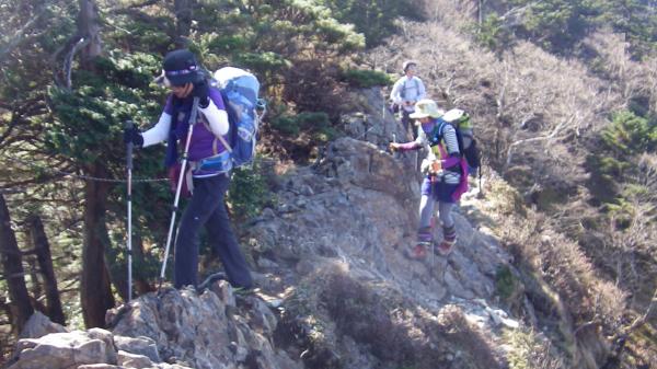 釈迦ヶ岳山頂から孔雀岳は滑りやすく注意を要します。ロープや鎖がありますが慎重に歩きましょう。