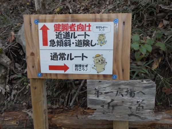 - 登りだしてしばらく行くと通常ルートと健脚者コースに分かれます。通常ルートから行きましたが、急斜面もなくなだらかなな登山道です。非常に整備された歩きやすいコースです。