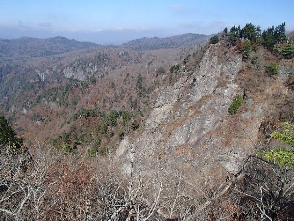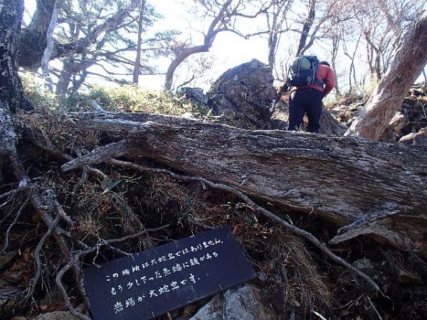 - 駐車場大台山上駐車場→(30分)→シオカラ谷吊橋→(50分)→大蛇嵓分岐→(15分)→大蛇嵓→(20分)→牛石ヶ原→(25分)→正木ヶ原→(40分)→日出ヶ岳 →(30分)→大台山上駐車場