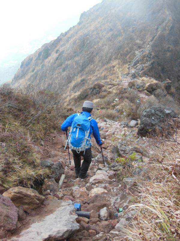 - 由布岳東登山道は、鎖場・岩場がある急坂が続きます。特に雨のあとはかなり滑りやすいので注意が必要です。正面登山道は比較的歩きやすい登山道です。マタエ~東峰山頂は滑りやすいザレ場が続きますので気をつけて。