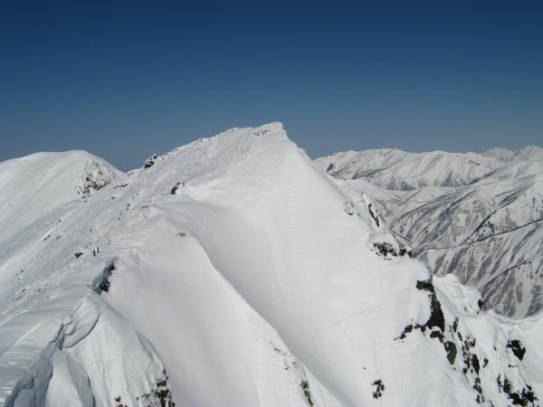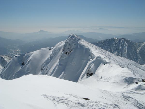 熊穴沢避難小屋までのいくつかの小ピークには巻き道がありますが、道幅がかなり狭いのでそちらを歩くときはアイゼンの刃を足の内側に引っかけないように注意してください。