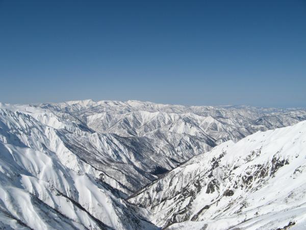 熊穴沢避難小屋から先、肩の小屋までは長い急登になります。登りは大変ですが、下りはフカフカ雪の上をサクサク下れるのでとても楽しく、あっと言う間に下りられました。富士山の砂走りの感覚に似ていますね。