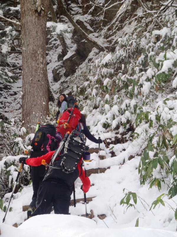 積雪期は通常よりも時間がかかるので、ゆっくり休憩を楽しんでいたら小屋に到着するのが