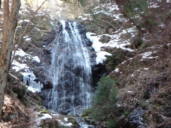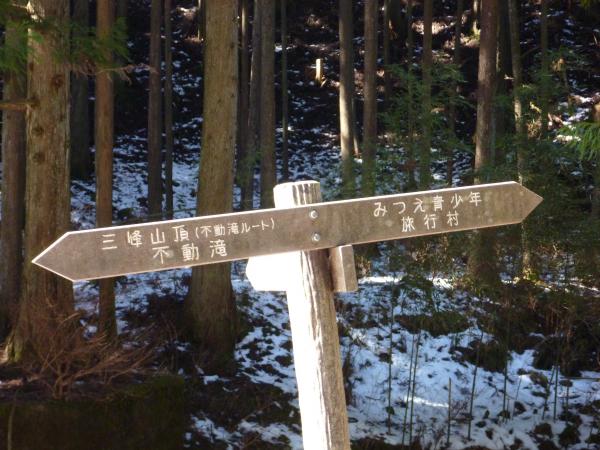 - 駐車場(10:45)-三峰山登山口(10:50)-不動滝ルート別れ(11:00)-不動滝(11:25)