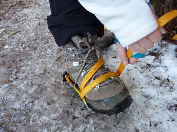新道峠からの下りも滑り易いので、しっかりアイゼンを効かせ下ってください。