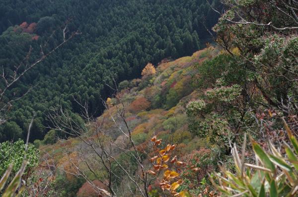 その先はやせた尾根上の登山道が続きます、急斜面には太いロープが設置されていますが三重県側はスパッと切れているところがあるのでむやみに覗かないこと。
