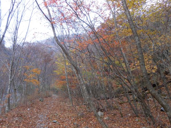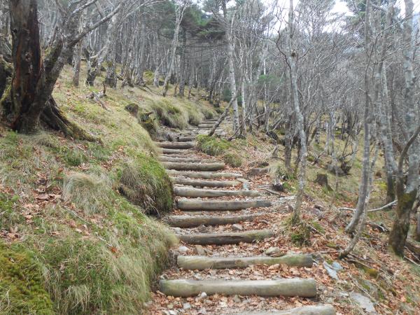 - 登山口から暫くは平坦な道。出合まではかなりの急勾配と木の根っこがむき出す悪路が続きます。