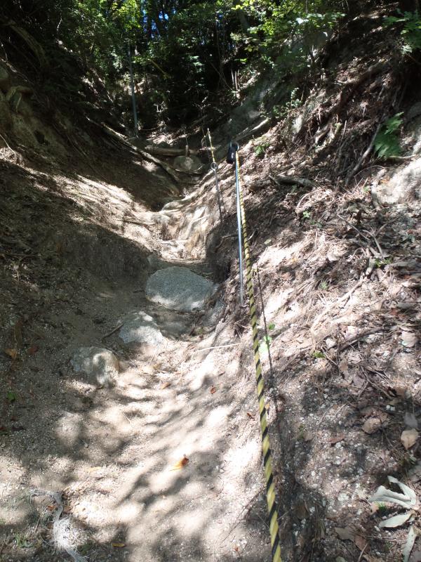 - 夏の台風18号の影響で「くじらの滝コース」は一部崩落のため通行止めになっています(2013/9/27現在)。今回登りで使用した葛城山新登山道は、登り始めは急登ですが、徐々に坂がなだらかになり、周りの自然を楽しみながら登れるコースでした。