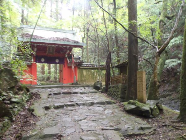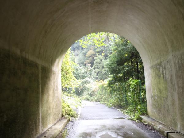 - バス停から温泉街を越えて入山。七宝滝寺までは石の階段を上るため、雨上がりなど、濡れていると滑りやすい。七宝滝寺すぐ横を階段で上がると、県道を林道分岐まで歩く。途中トンネルを通るが、短いため外の明かりが中まで届いています。林道から五本松までは山道に入り、それまでと違ってやや坂が急です。この山道を登るのはトレッキングシューズが安心です。
