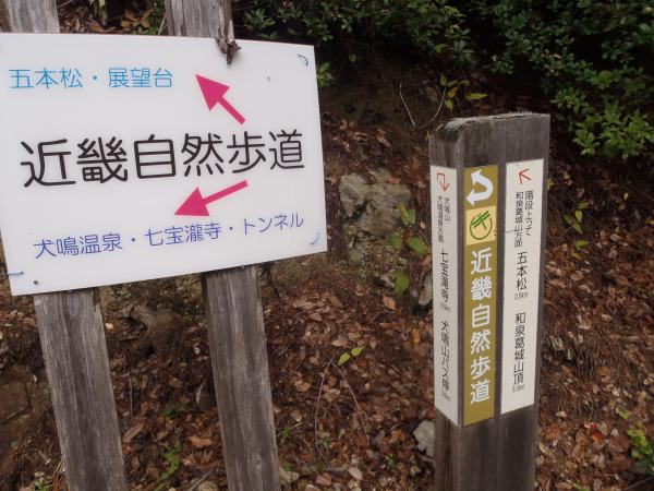 - 犬鳴山バス停<30分>七宝滝寺<30分>林道分岐<30分>五本松<20分>林道分岐<30分>七宝滝寺<20分>犬鳴山バス停