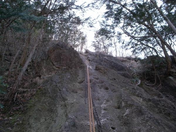 山頂から東に少し行くと70mの鎖場の上部に!!