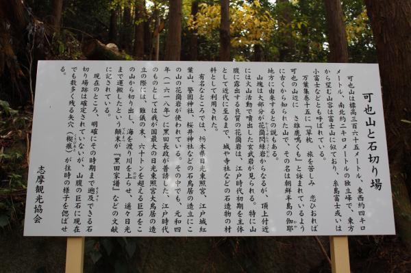 - 師吉公民館前バス停-(30分)-石切場跡-(20分)-可也山山頂-(30分)-師吉公民館前バス停
