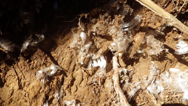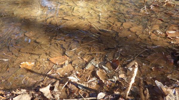登山道入り口の水たまりは薄氷が張っていました。晩秋というか、もう初冬の雰囲気ですね。