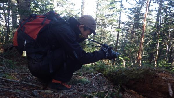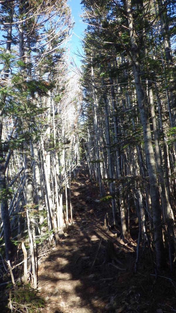 踏み跡もここだけ急に不明瞭。山頂までの距離と時間はそんなにかかりませんでした。