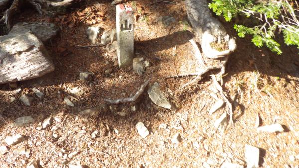 登り返しの途中で鉄山を示す看板が出て来ました。でも、倒れています。