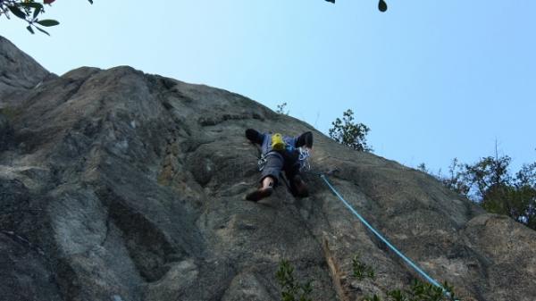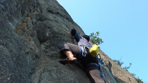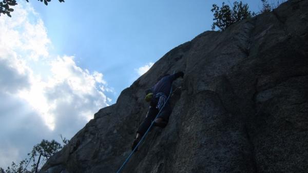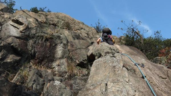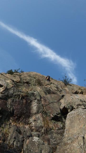ビギナーズロックの下部、上部をマルチでつなぎ、その後は夕暮れロックやべムロックなどで秋晴れの気持ちの良い天気の中、一日中クライミングを楽しみました。