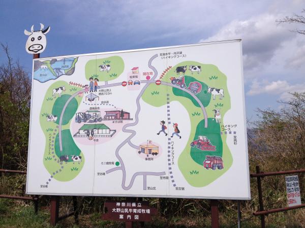 - 山北駅(25)大野山入口(20)大野山登山口(25)共和小学校(20)大野山山頂(75)乳牛育成牧場(15)深沢三差路(30)大野山登山口(30)大野山入口(25)山北駅