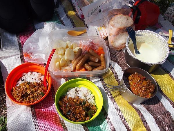 チーズフォンデュの具材はやまむー、チーズとドライカレーは私、デザートとご飯は石井ちゃん。