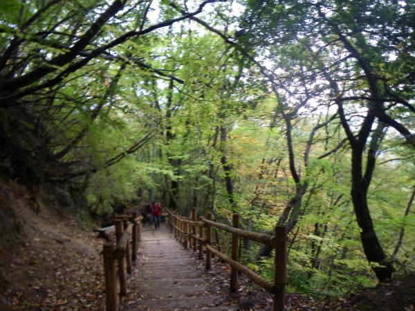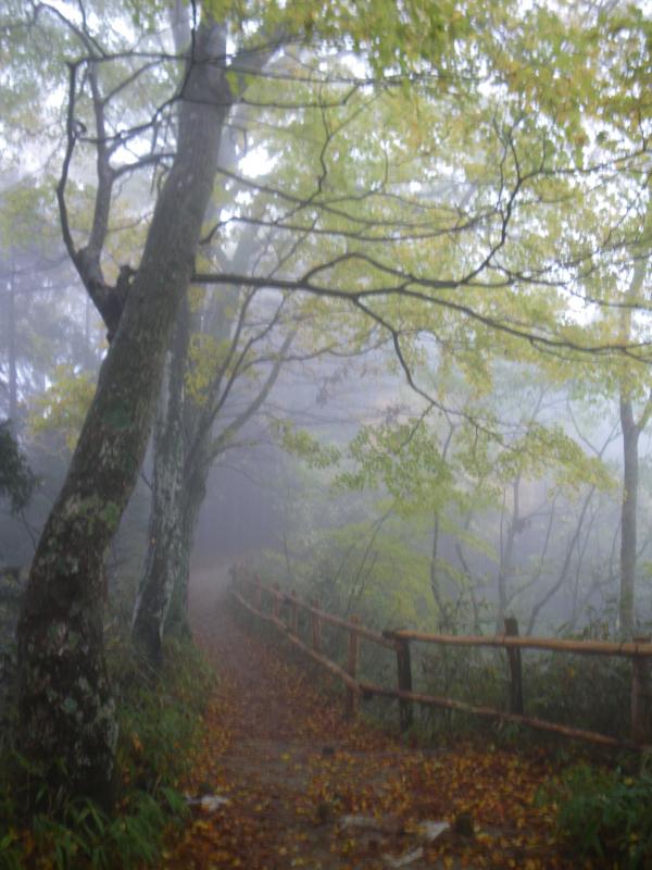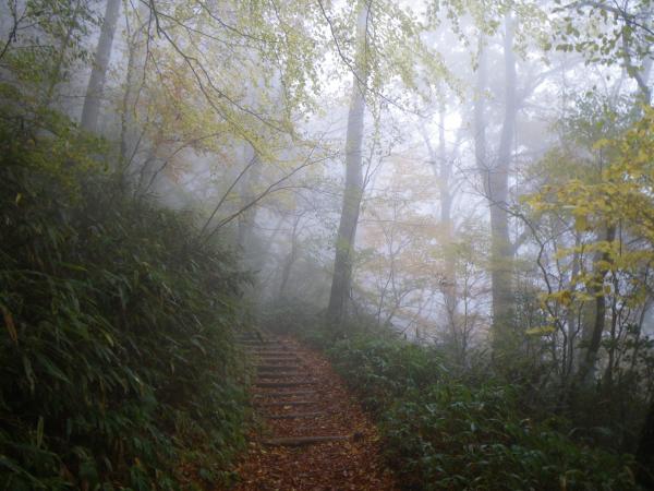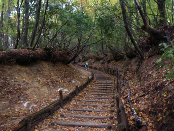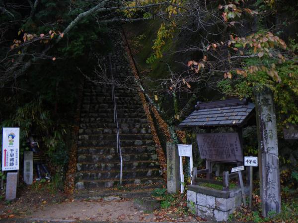 千早本道は代表的なコースで、木の道が続き、整備が行き届いています。紅葉は千早城跡や5合目~山頂が広葉樹が多く、裏参道のブナ林やロープウェイ方面も広葉樹が多いですが、11月中旬ということで、上部は落ち葉が多く、麓におりてきている感じです。麓の道路は10度で、山頂は5度を記録していましたので、寒く感じました。防寒着はお忘れなく。