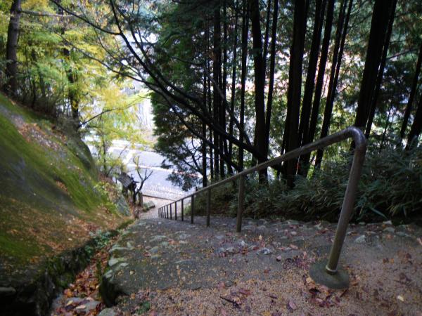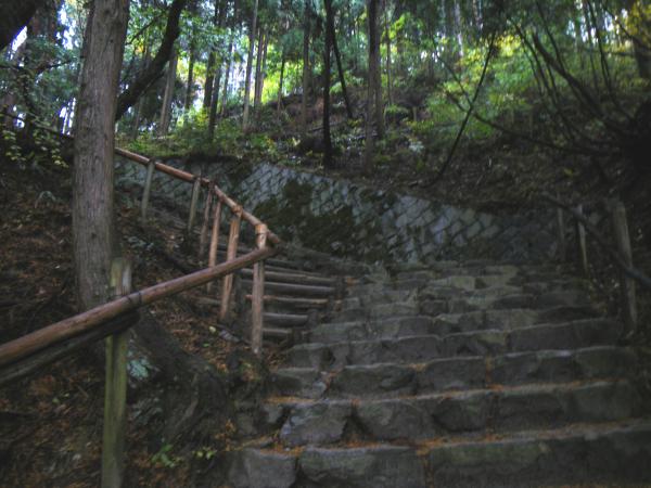 ③千早城跡は急な階段でここが一番きつく、後はひたすら等間隔の木の道が続きます