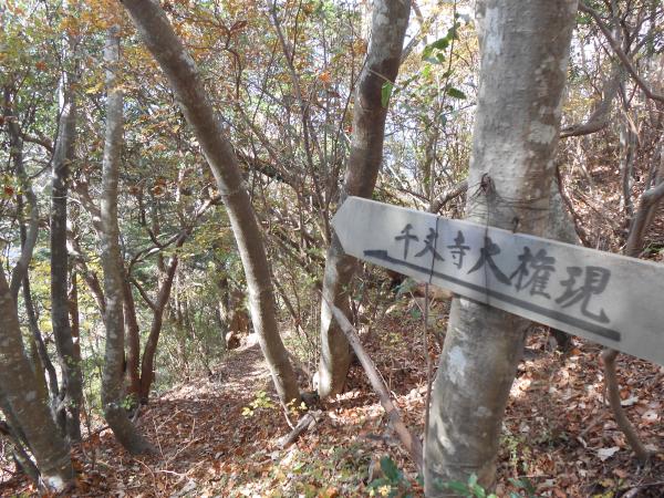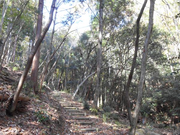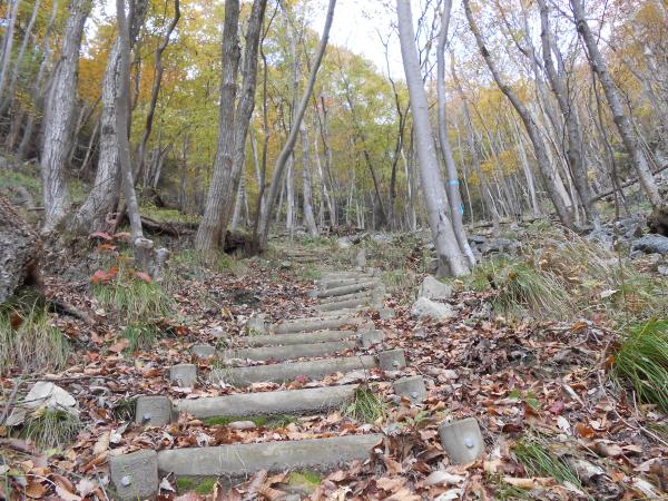 歩き出して30分ほど過ぎると、急な木段が始まり、そこから北・南千丈寺山山頂の分岐までは急な道がつづきます。