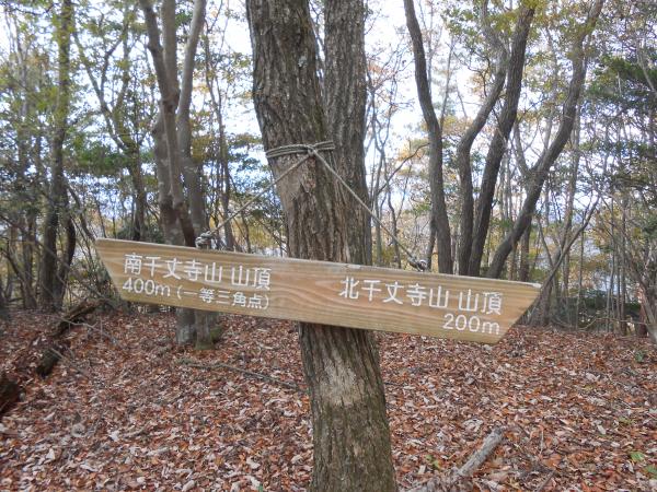 - てんぐの森多目的広場(50分)北・南千丈寺山頂分岐(10分)南千丈寺山山頂(20分)北千丈寺山山頂(40分)てんぐの森多目的広場