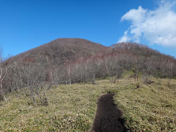新潟は土砂降りでしたが、国境を越えると予想通り眩しいほどの晴天!この時期上州は狙い目ですね。この日は登山口もぽかぽか陽気でダウンも用意しましたが出番はありませんでした。朝日を浴びながらぐんぐん登ると、気持ちの良い笹の草原に出ました。青い空に映える黒檜山を眺めながら稜線漫歩を楽しめます。