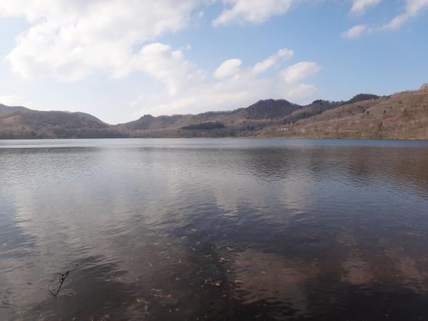 日の当たっている場所は完全に乾いていましたが、日蔭で雪の残っている箇所と雪が解けてぐしょぐしょの箇所とがありました。赤城の土は黒土なので、少し明るめの色のパンツを履いていた私の足元はみっともないことになってしまいました。スパッツを持っていくべきだった…。