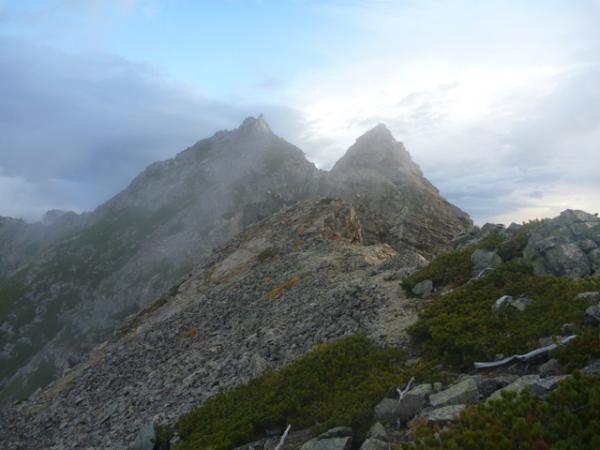 - 岳沢登山口→(4:00)→明神岳5峰→(5:00)→前穂高山頂→(1:30)→奥穂高岳山頂→(0:30)→穂高山荘(テント泊)